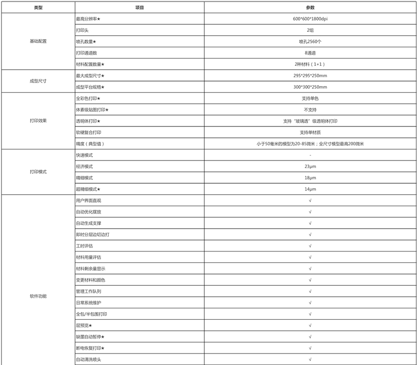 规格:2组打印头 , 成型平台高达300*300*250mm